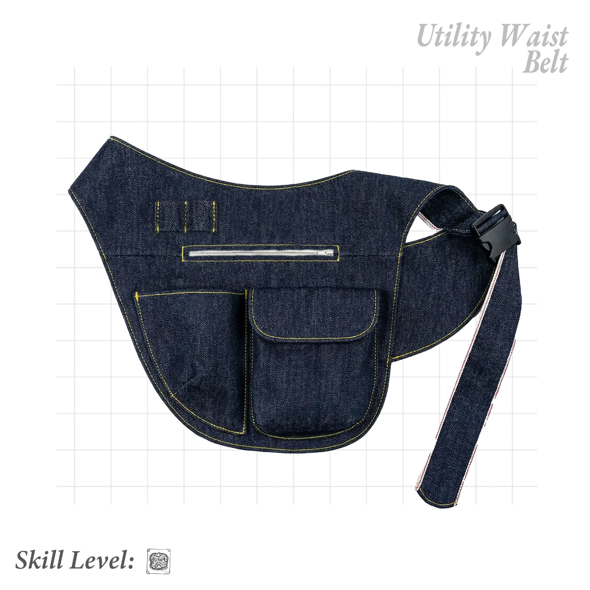 This utility belt pattern is designed as a compact introduction to the techniques used in Roughcut jackets, cargos and vests — but scaled down into a beginner-friendly, fast project. You’ll work with curved panels, layered pockets and neat top-stitching, giving you a small, wearable piece that feels like real gear from the moment you finish it.