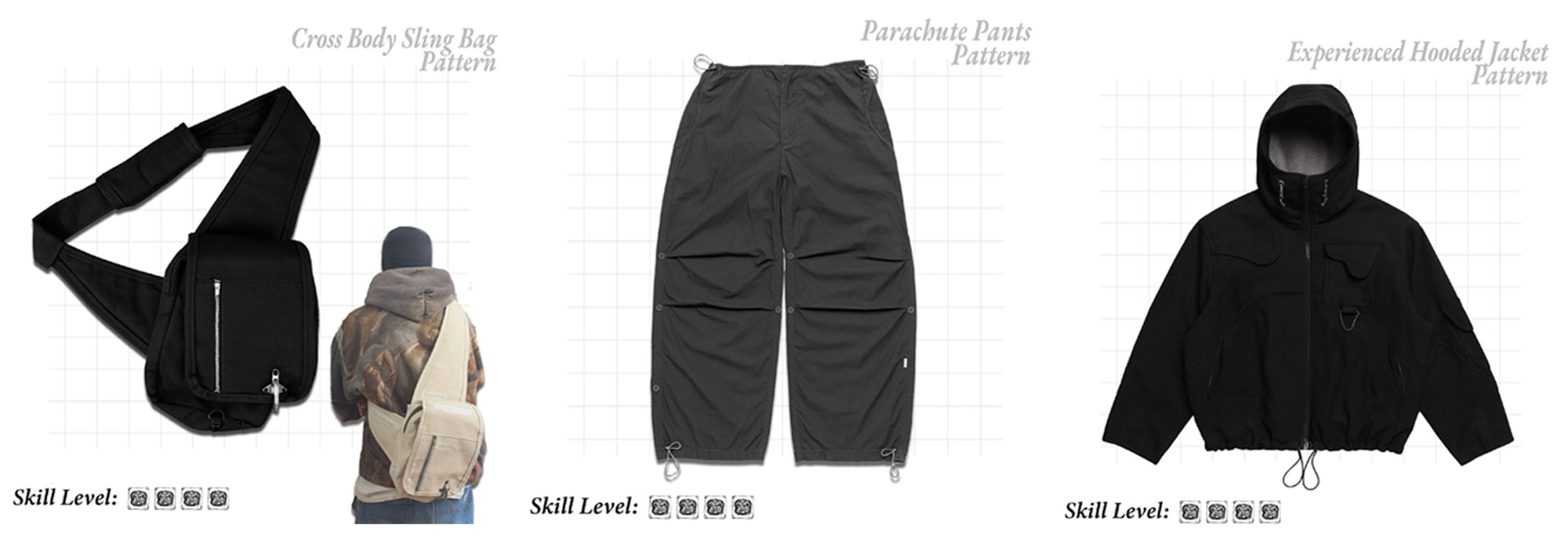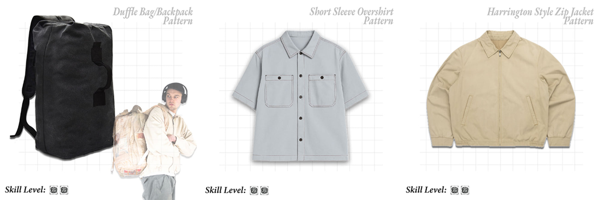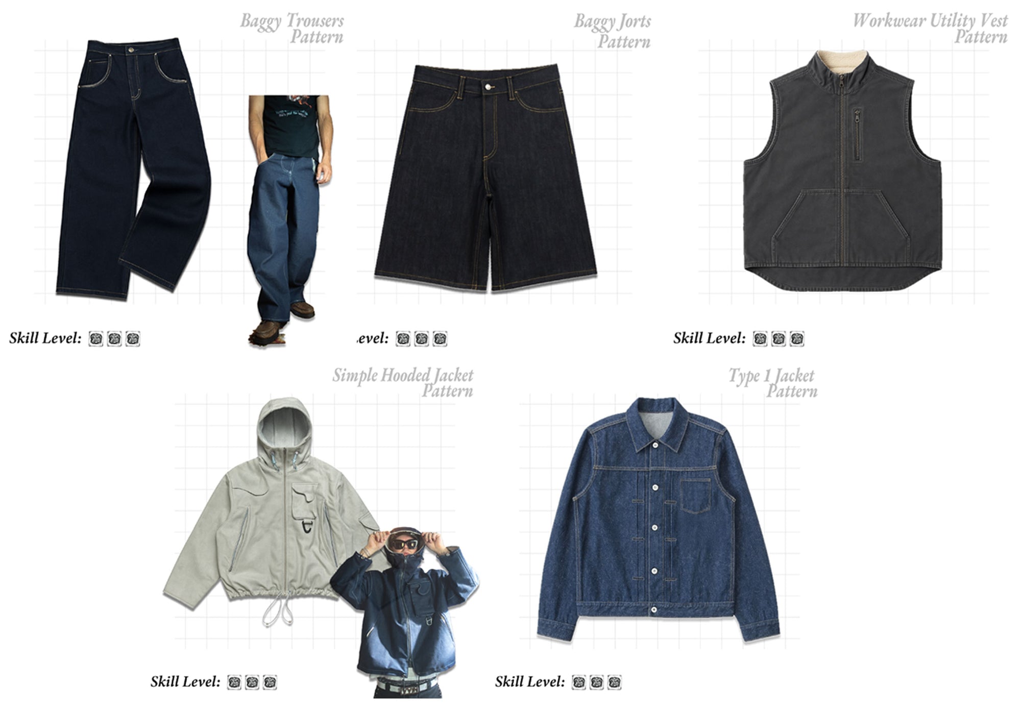 Every Roughcut pattern is graded from Skill 1–5. Whether you’re picking up scissors for the first time or ready to tackle advanced jackets, there’s a project for you.